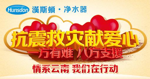 8月3日16时30分,云南省昭通市鲁甸县发生6。5级地震。截至8月5日14时,地震造成昭通市鲁甸县、巧家县、昭阳区和曲靖市会泽县410人遇难。汉斯顿集团高度关注此次灾情发展,并立即作出反应在云南代理商的协同下将第一批价值100万净水器设备送往灾区用于解决灾民的饮用水危机。公司总部也公布表示将捐赠500万款物用于灾区救援及灾后重建工作。