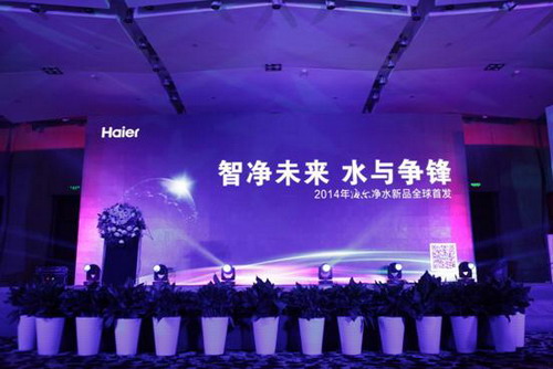 2014年8月26日,海尔净水在青岛海尔洲际酒店召开2014年全球新品发布会,海尔副总裁解居志先生、中国质量检验协会净水设备专业委员会理事长兼秘书长邓瑞德先生,国家发改委宏观院公众营养与发展中心饮用水产业委员会顾问组专家、中国质量检验协会净水设备专业委员会常务副理事长顾久传先生、海尔净水总经理曲桂楠先生等专家、行业代表及媒体代表出席了本次发布会。
