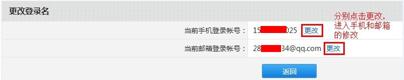 第二步:点击上图中”修改手机账户“或”修改邮箱账户“,进入“更改登录名”页面,如下图: