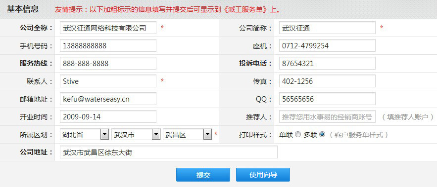 最后:基本信息中的"公司简称"可用于申请提交短信签名,详情请查看“短信发送”帮助文章。提交“所属区划”信息后,方便在填写客户资料时,自动引用您所在行政区划信息,提高操作效率。如何添加客户资料,请查看“客户资料管理”帮助文章。
