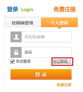 忘记密码:通过如下图“个人登录”页面的“忘记密码”按钮,进入密码重置页面: