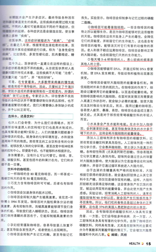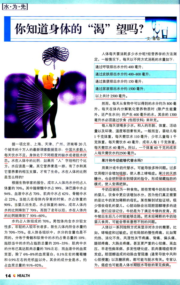 剪报图片:喝水不能补充微量元素 作用微乎其微