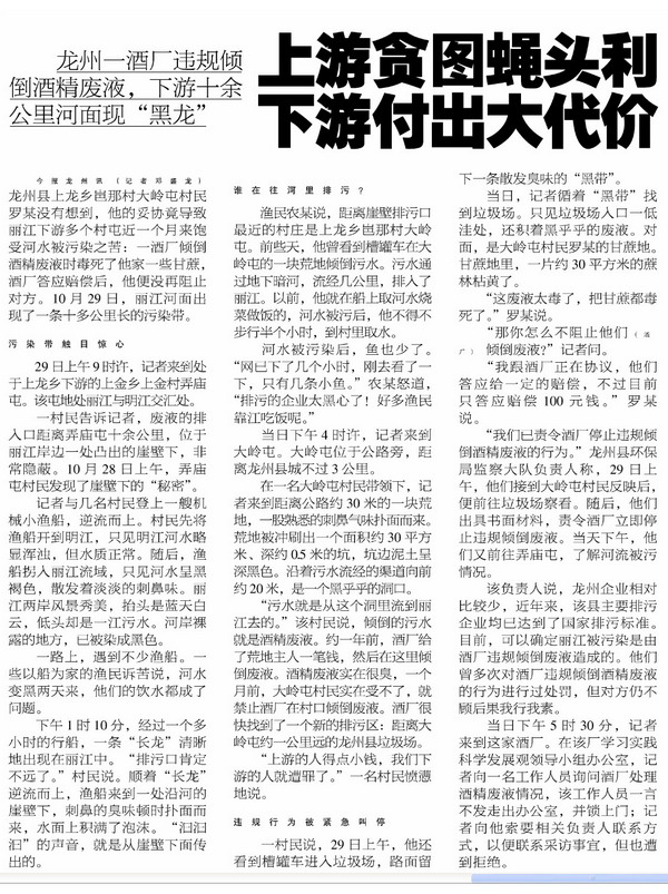 剪报图片:南国今报 上游贪图蝇头利 下游付出大代价