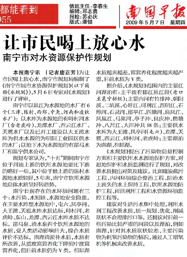 剪报图片:南国早报 让市民喝上放心水