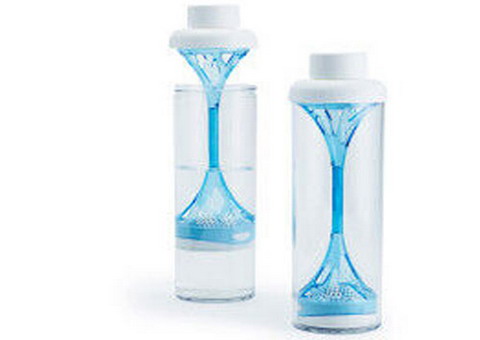 该水瓶集美观、功能和环保于一身,过滤器底部装有活性炭滤芯,使用时将瓶盖抽出,把水注入瓶中,再将瓶盖缓缓压下,自来水经过滤芯得到净化,便转变为可安全饮用的纯净水了。有了这款水瓶,就能随时随地自己制作纯净水啦。