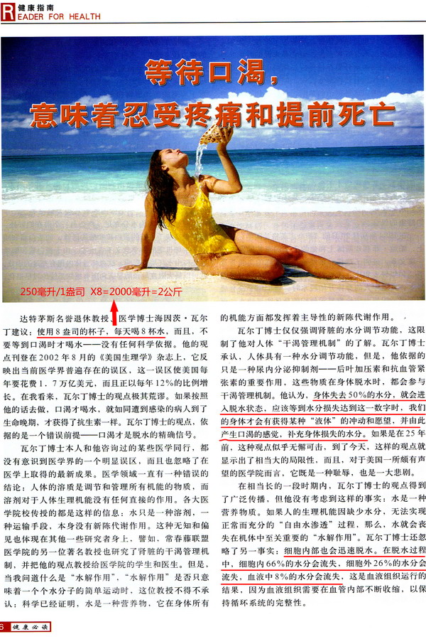剪报:健康指南 等待口渴,意味着忍受痛苦和提前死亡